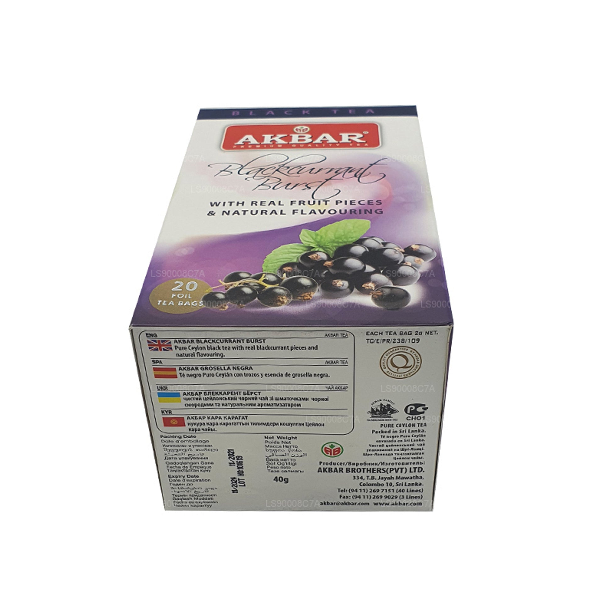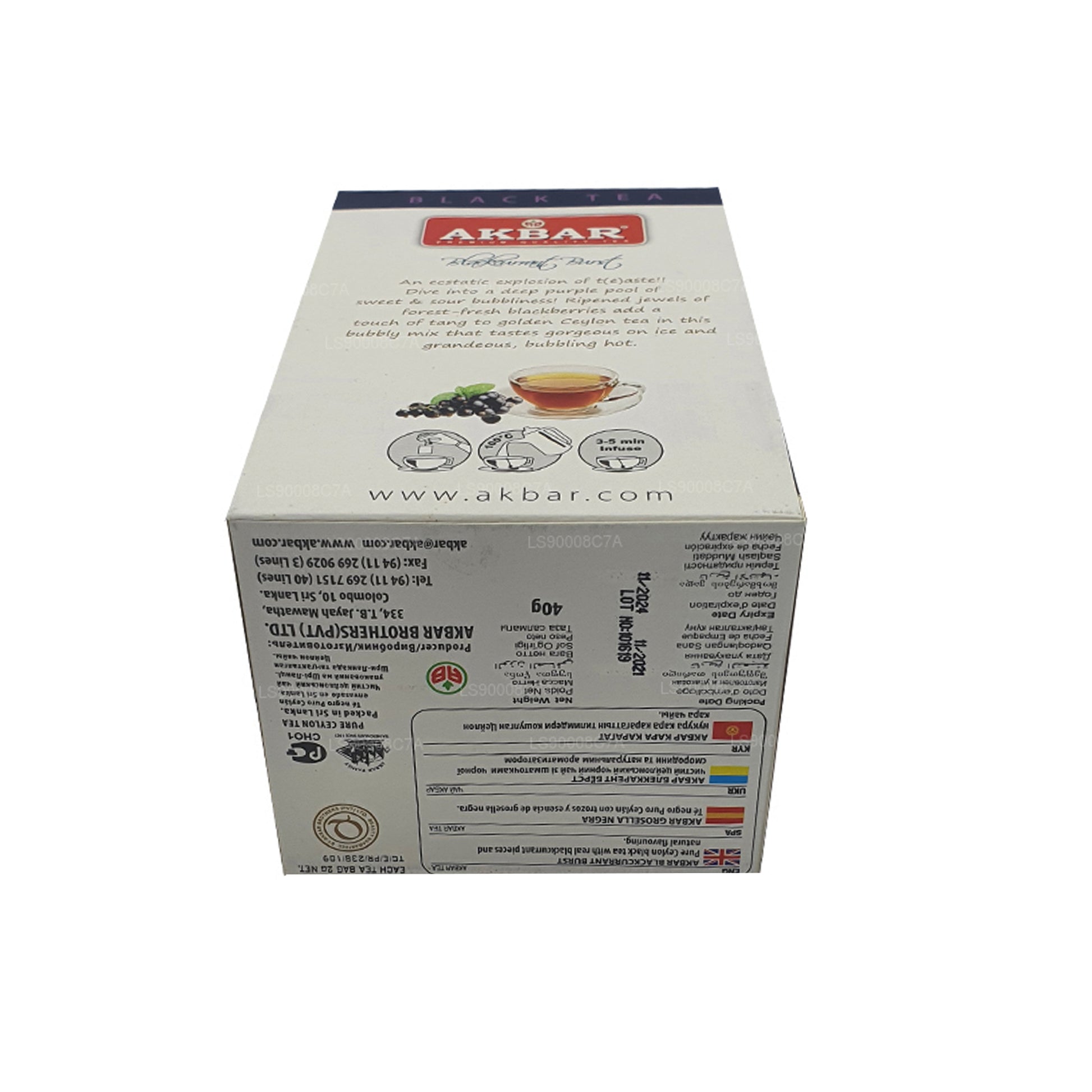 .Diese besondere Reihe von Schwarztees gehört zu einer Premium-Serie, die den Unterschied macht. Mit zwanzig Folienteebeuteln können Sie einfach frisches Wasser in einen Wasserkocher ziehen, es zum Kochen bringen und das Wasser in eine Tasse gießen. Fügen Sie einen Teebeutel hinzu und lassen Sie ihn etwa drei Minuten ziehen, und schon haben Sie eine tolle Tasse Ceylon-Schwarztee mit dem interessanten Geschmack der schwarzen Johannisbeere. Akbar-Tees sind weltbekannt für ihre hochwertigen Tees und Premium-Sortimente. Sie werden von Hand aus den üppigen grünen Bergen des Hochlands Sri Lankas gepflückt