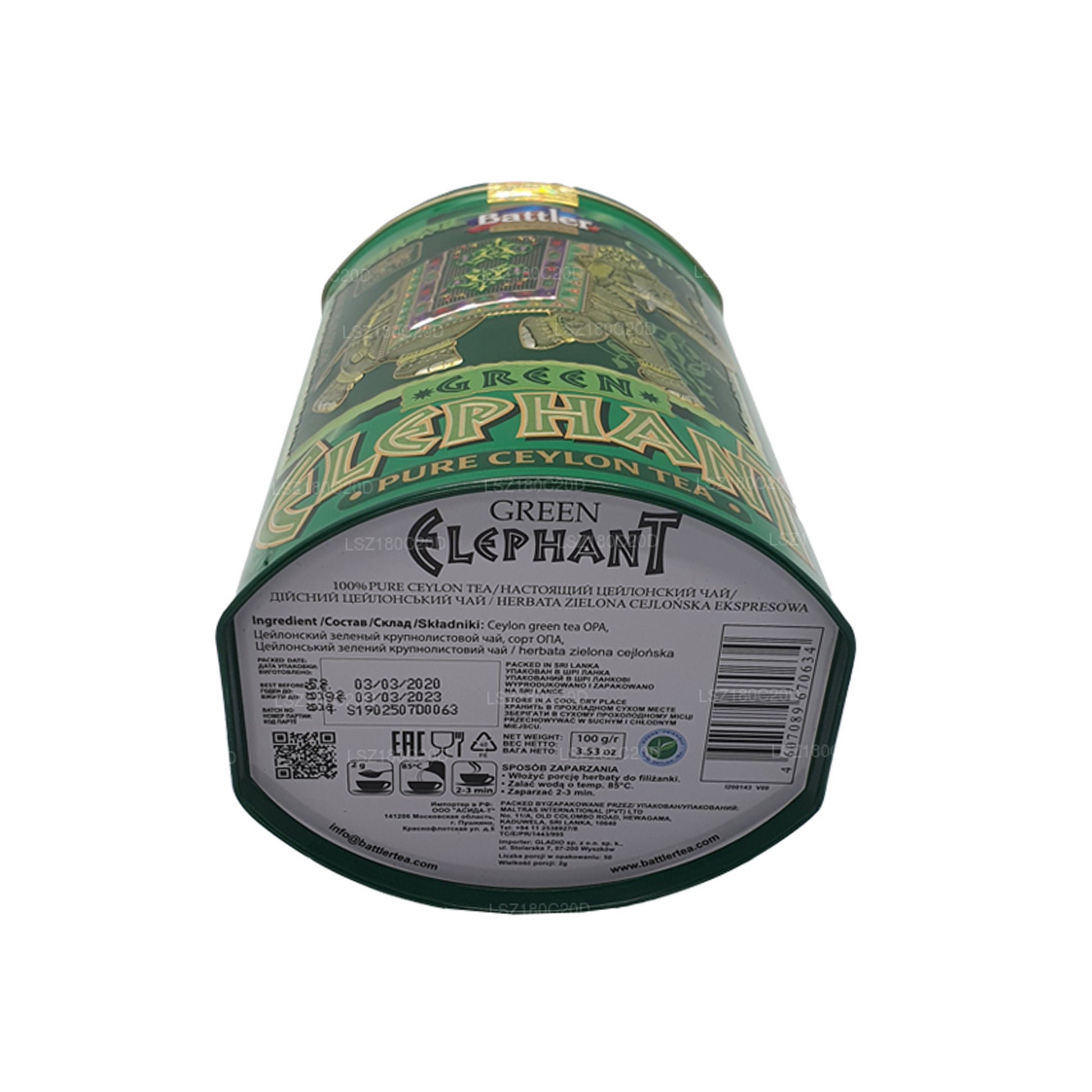 (SKU: LSZ180C20D ) Der Battler Green Elephant OPA-Dosenbehälter ist ein Symbol für Tee-Eleganz und enthält 100 g hochwertige Teeblätter. Sein Design zeigt ein faszinierendes grünes Elefantenmotiv und verkörpert eine Verschmelzung von Tradition und Moderne. Der Begriff „OPA“ steht für feinsten Orangen-Pekoe-Tee der Güteklasse A, der für seine intakten, größeren Teeblätter bekannt ist. In dieser Blechdose behält der Tee seine Essenz und Frische, die durch den luftdichten Verschluss, der seine Qualität sichert, noch verstärkt werden. Dieser Caddy ist mehr als nur eine Verpackung; Es ist ein Beweis für die Kunst der Teekonservierung und -präsentation. Das Aufbrühen aus seinen Inhaltsstoffen verspricht ein exquisites Teeerlebnis, bei dem Geschmack und Aroma harmonisch verschmelzen. Der Battler Green Elephant OPA-Dosenbehälter ist ideal für Teeliebhaber, die sowohl ästhetischen Reiz als auch erstklassigen Geschmack suchen. Er bereichert jede Tasse mit dem Erbe und der Exzellenz außergewöhnlichen Tees.