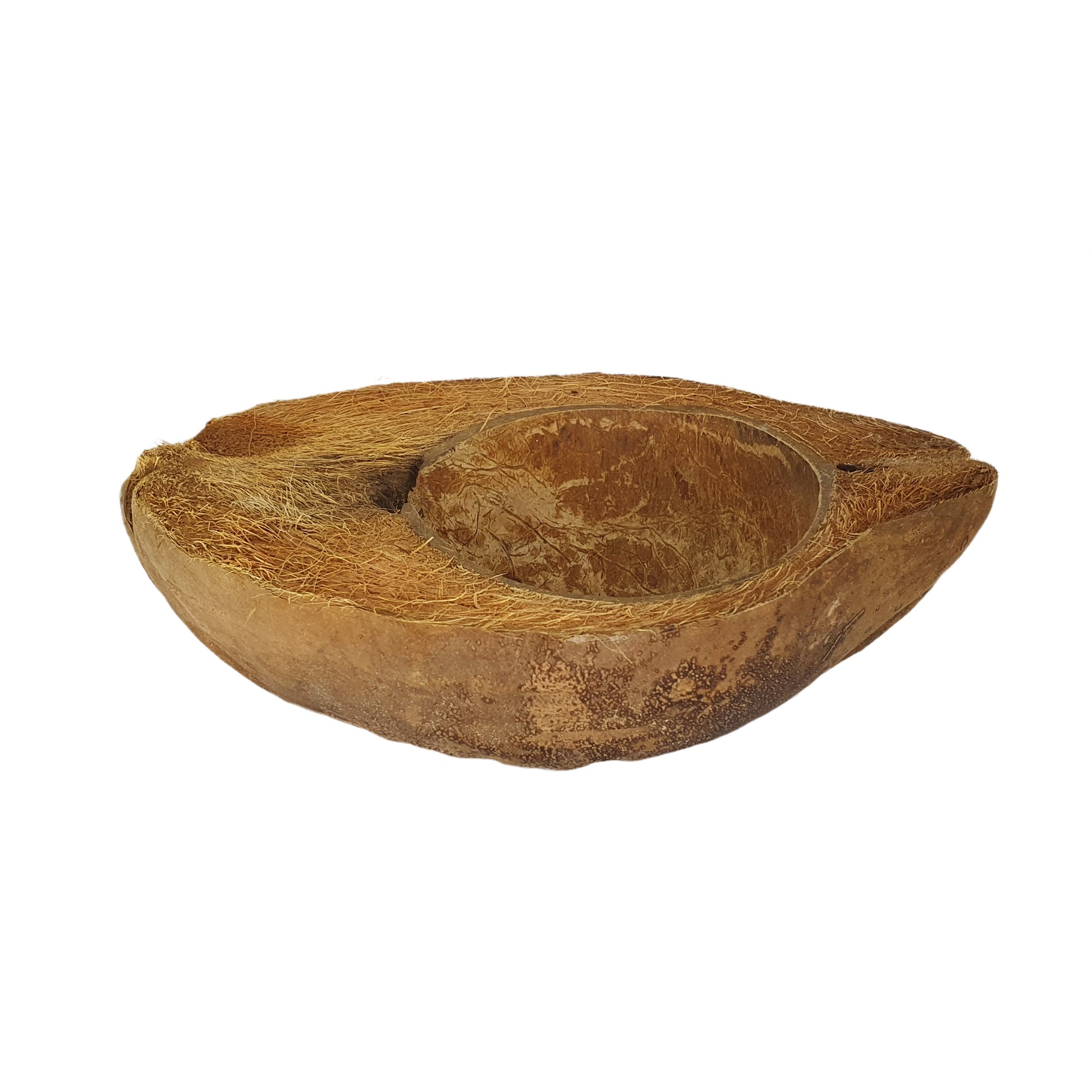 The Bivenro Natural Coconut Pet Bowl is an eco-friendly feeding and watering solution crafted from a full coconut shell with husk, vertically halved for depth and stability. Each bowl is naturally unique, celebrating the rustic charm and raw beauty of coconut while offering a sustainable alternative to plastic dishes.