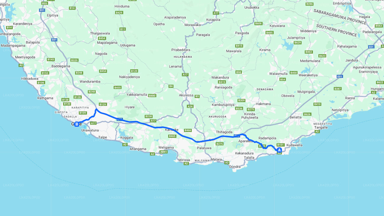 Buchen Sie einen privaten Taxitransfer von Dikwella nach Galle . Der Flughafentaxi- Service wird von englischsprachigen Chauffeuren durchgeführt, die freundlich und pünktlich sind und Ihre Sicherheit an erste Stelle setzen. Genießen Sie ein komfortables und stressfreies Erlebnis mit Ihrem privaten Fahrzeug und Chauffeur von Dikwella nach Galle . Die Fahrzeit beträgt 1,10 Stunden, die Distanz 62 km. Je nach Wetter und Verkehr wählt Ihr Chauffeur die beste verfügbare Route des Tages.