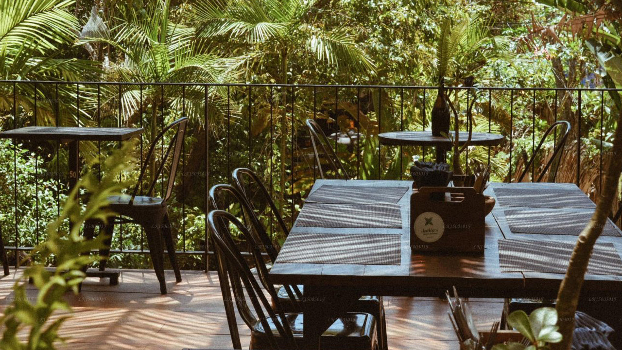 (Artikelnummer: LK1500301F) Eingebettet an der unberührten Küste von Dikwella bietet das Dots Bay House einen traumhaften Rückzugsort an der Küste. Von gemütlichen Schlafsälen bis hin zu Strandbungalows – unsere Unterkünfte verkörpern minimalistisches Strandflair. Genießen Sie frische Meeresfrüchte in unserem Strandrestaurant, entspannen Sie in Hängematten und tauchen Sie ein in die Surfkultur mit unseren Einrichtungen, darunter Surfbrettverleih und Yoga-Kurse. Das Dots Bay House lädt Sie in eine entspannte Oase ein, wo das Rauschen der Wellen und farbenprächtige Sonnenuntergänge ein unvergessliches Erlebnis an Sri Lankas Südküste schaffen.