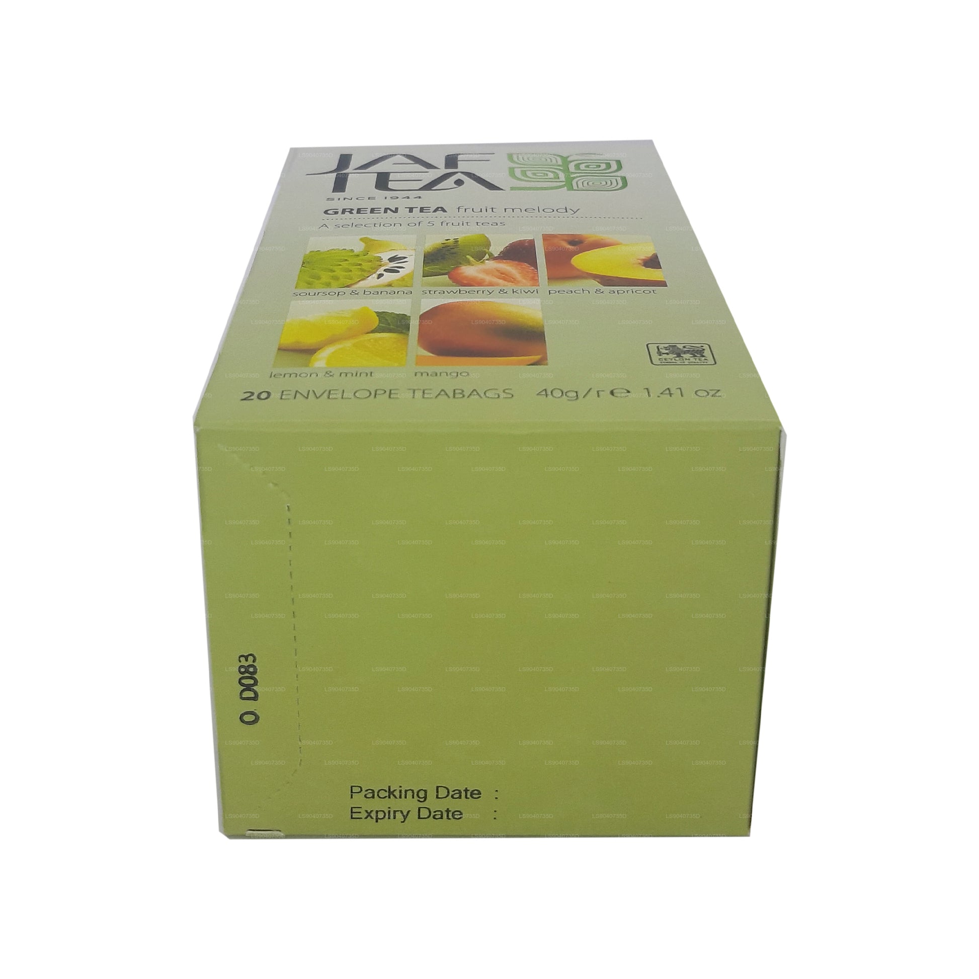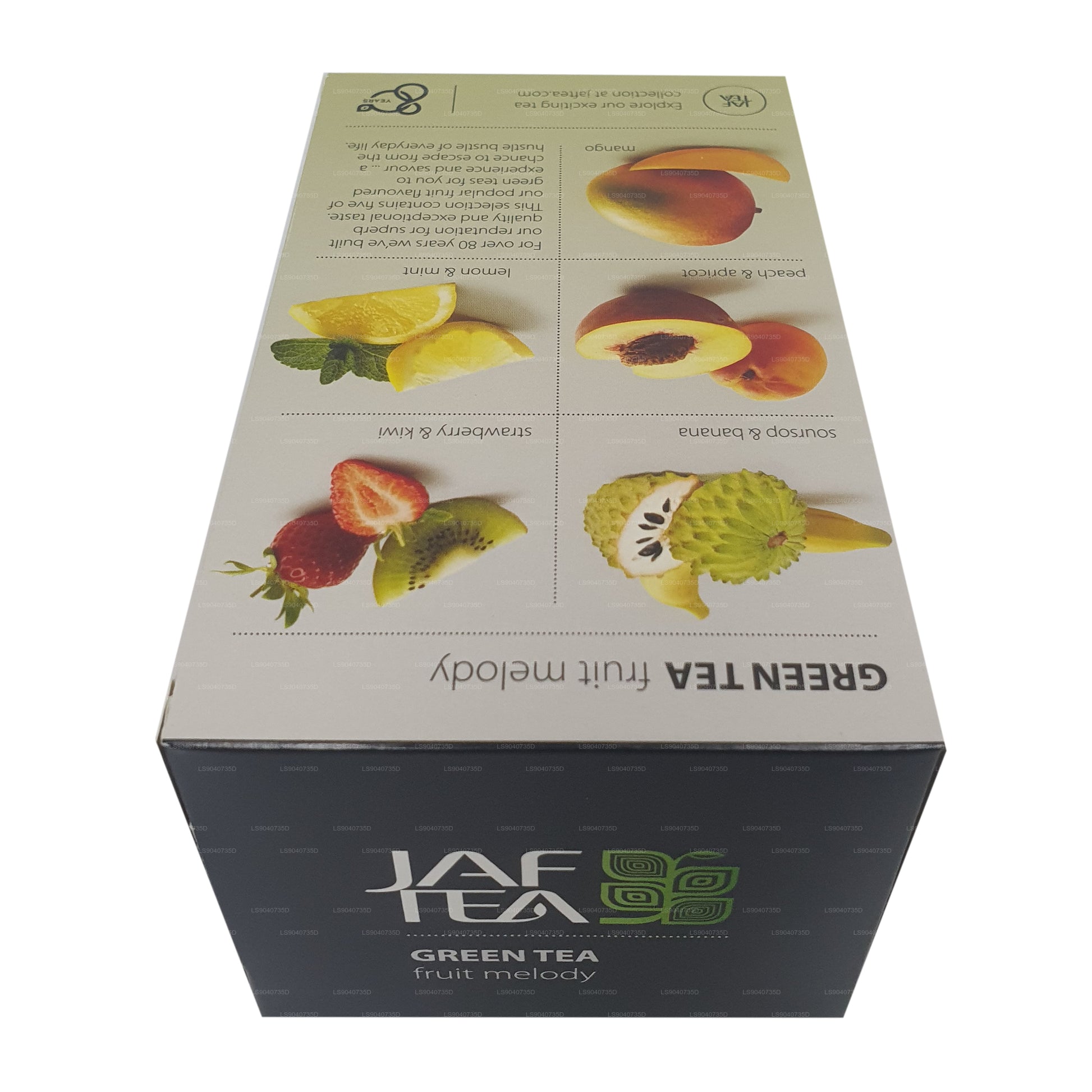 (SKU: LS9040735D) Dieser Artikel enthält eine Auswahl von 5 grünen Tees mit Fruchtgeschmack — jeweils 4 Teebeutel: