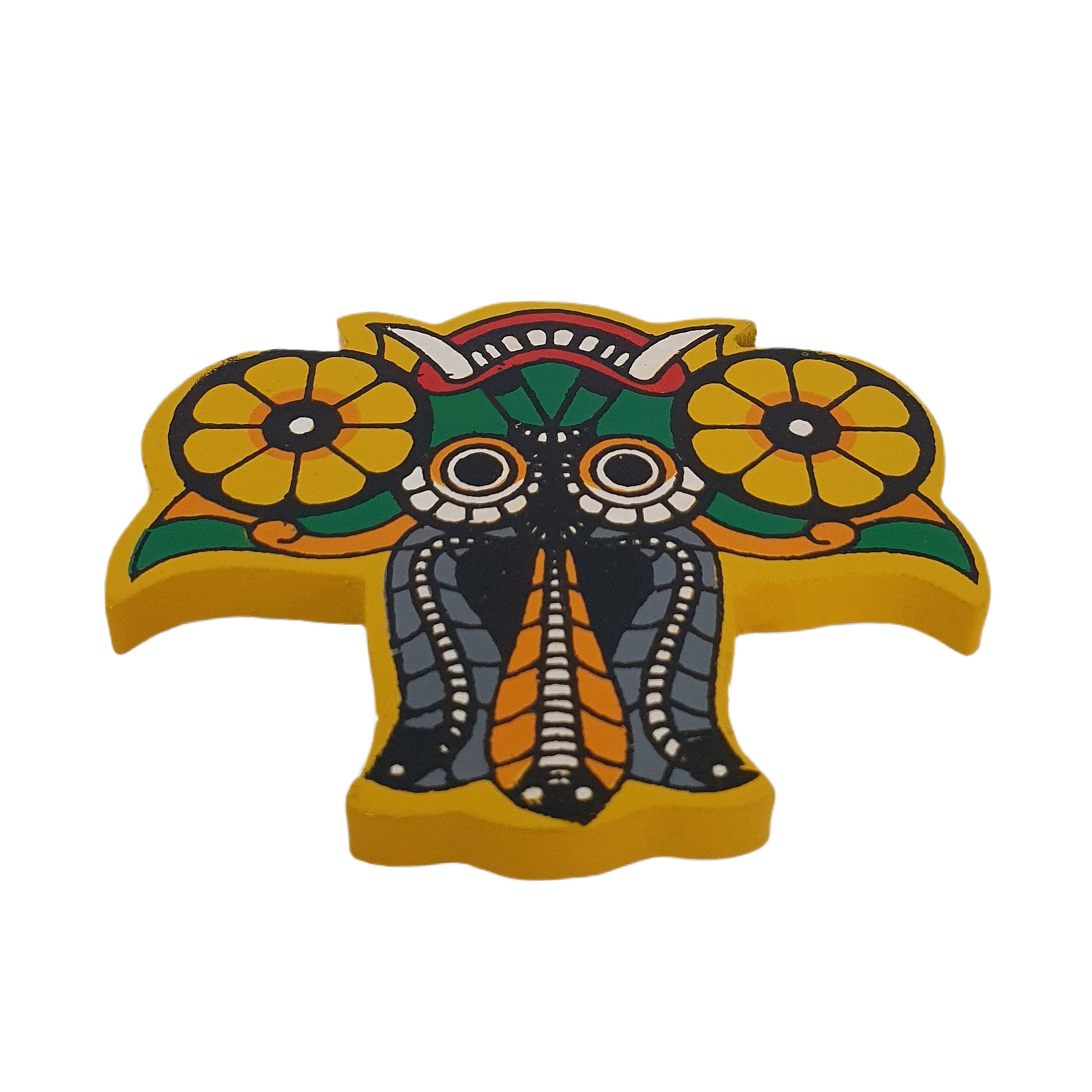 Der Kühlschrankmagnet mit Gara-Raksha-Maske ist ein traditionelles sri-lankisches Dekorationsobjekt, inspiriert von der Gara-Raksha-Maske. Dieser Maske wird eine schützende Wirkung zugeschrieben, die böse Geister abwehrt. Sie ist ein wichtiges Kultursymbol Sri Lankas und wird häufig bei Ritualen und Zeremonien verwendet. Als praktischer Kühlschrankmagnet bringt er einen Hauch sri-lankischer Tradition in Ihr Zuhause oder Büro. Die Gara-Raksha-Maske ist nicht nur ein wunderschönes Kunstwerk, sondern auch ein bedeutungsvolles Symbol für Stärke, Geborgenheit und positive Energie. Sie eignet sich perfekt als Geschenk oder Souvenir und ist sowohl ein kulturelles Andenken als auch eine charmante Bereicherung für jeden Raum.
