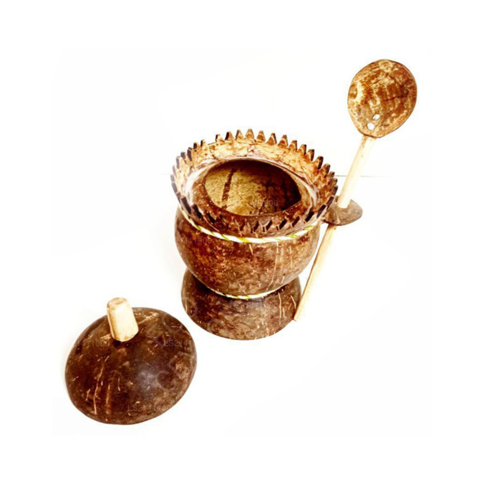 (SKU: LS21411000) Haben Sie Ihr Salz immer noch in einer Plastikflasche mit einem Plastiklöffel? Dass das nicht so ist, merkt man, wenn man einen Kokosnuss-Salzbehälter mit einzigartigem Design und einem daran befestigten Löffel hat. Außerdem verfügt es über eine Abdeckung, damit weder Insekten noch Staub eindringen können. Es wird nicht nur nützlich sein, sondern auch ein weiteres natürliches Schmuckstück zwischen Ihrer Sammlung von Gewürzbehältern sein. Bitte beachten Sie, dass die Lieferung ohne Glanz erfolgt