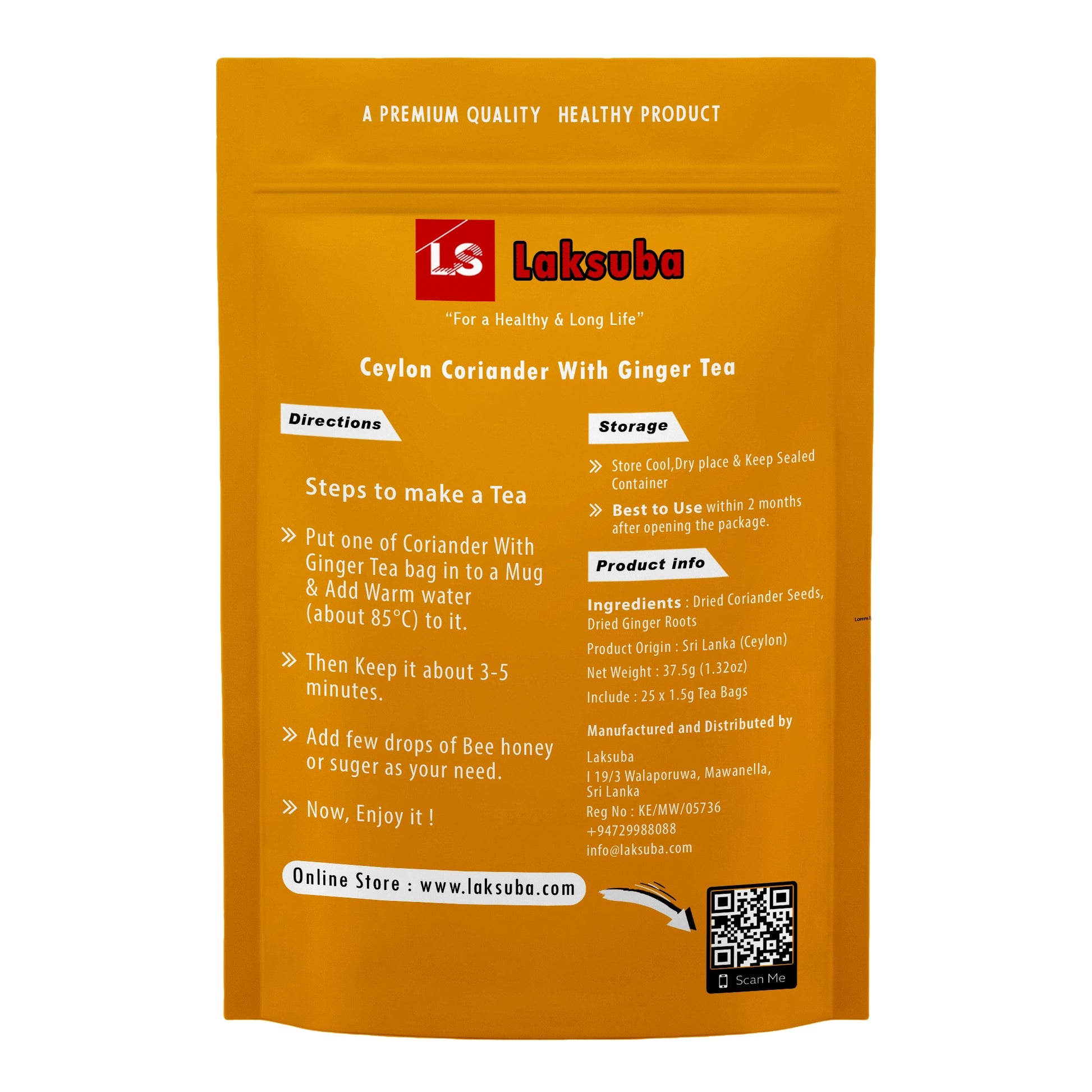 Laksuba Ceylon Koriander Ingwer Tee (37,5 g) 25 Teebeutel