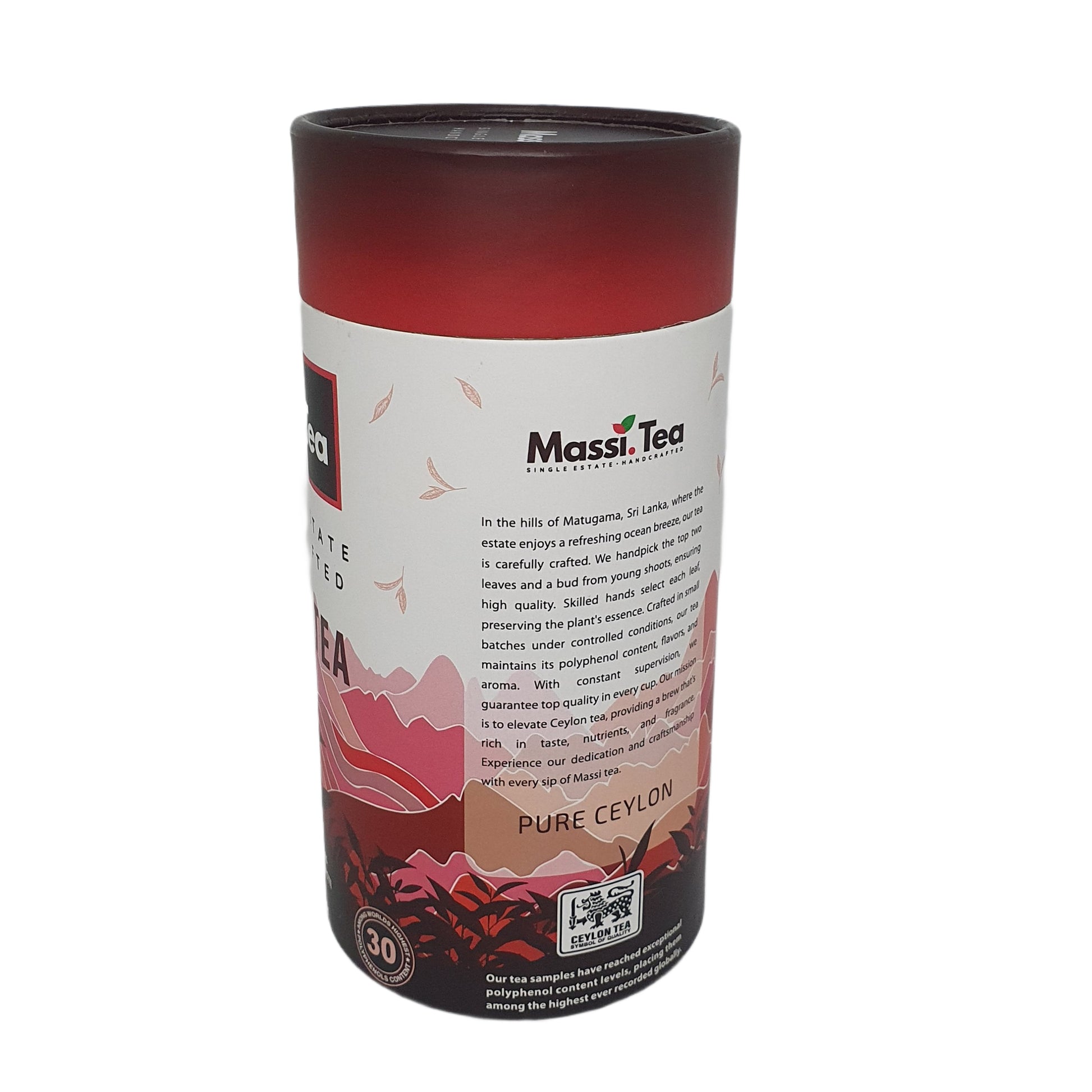 Massi Tea Black Tea ist ein handgefertigter Ceylon-Tee mit einem weichen, ausgewogenen und aromatischen Geschmacksprofil. Mit seiner milden Stärke und dem raffinierten Aroma bietet dieser Tee ein beruhigendes und vielseitiges Gebräu, das sich perfekt für den täglichen Genuss eignet. Ob pur oder mit Milch getrunken, sein klassischer Ceylon-Charakter sorgt für einen reichen und doch sanften Geschmack, der zu jeder Tageszeit passt. Damit ist er die ideale Wahl für Teeliebhaber, die ein würziges und dennoch beruhigendes Erlebnis suchen