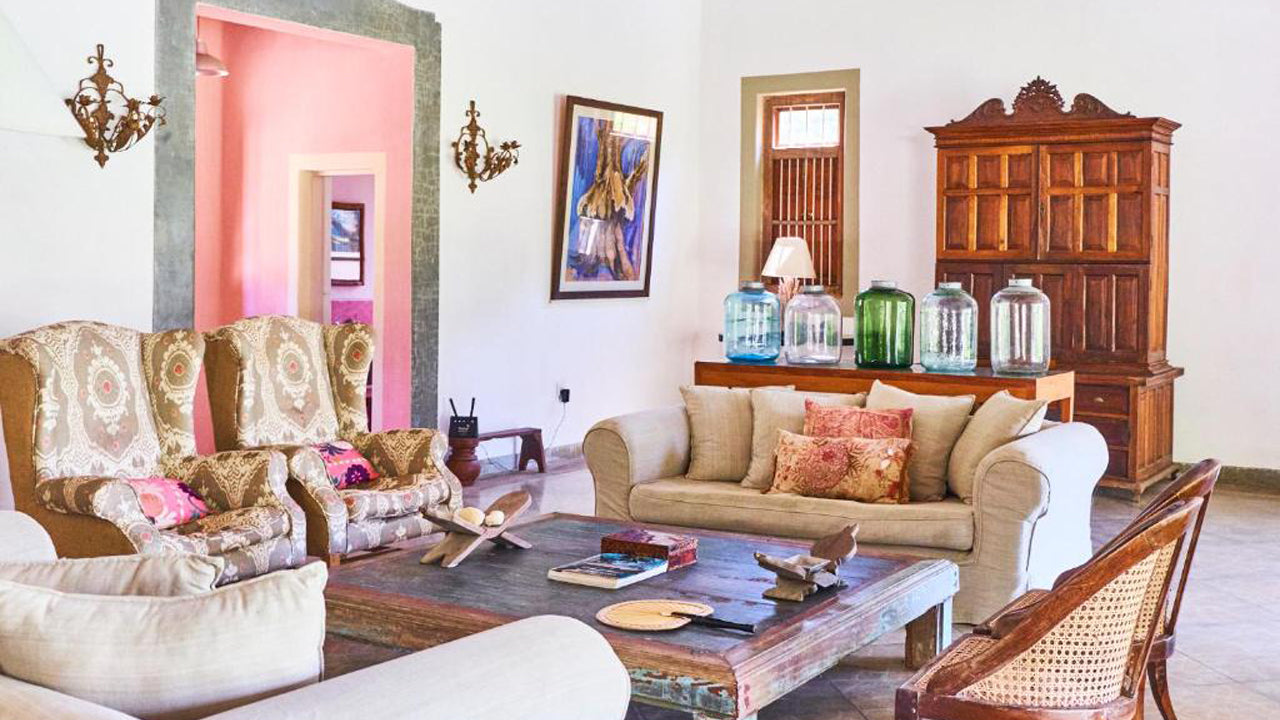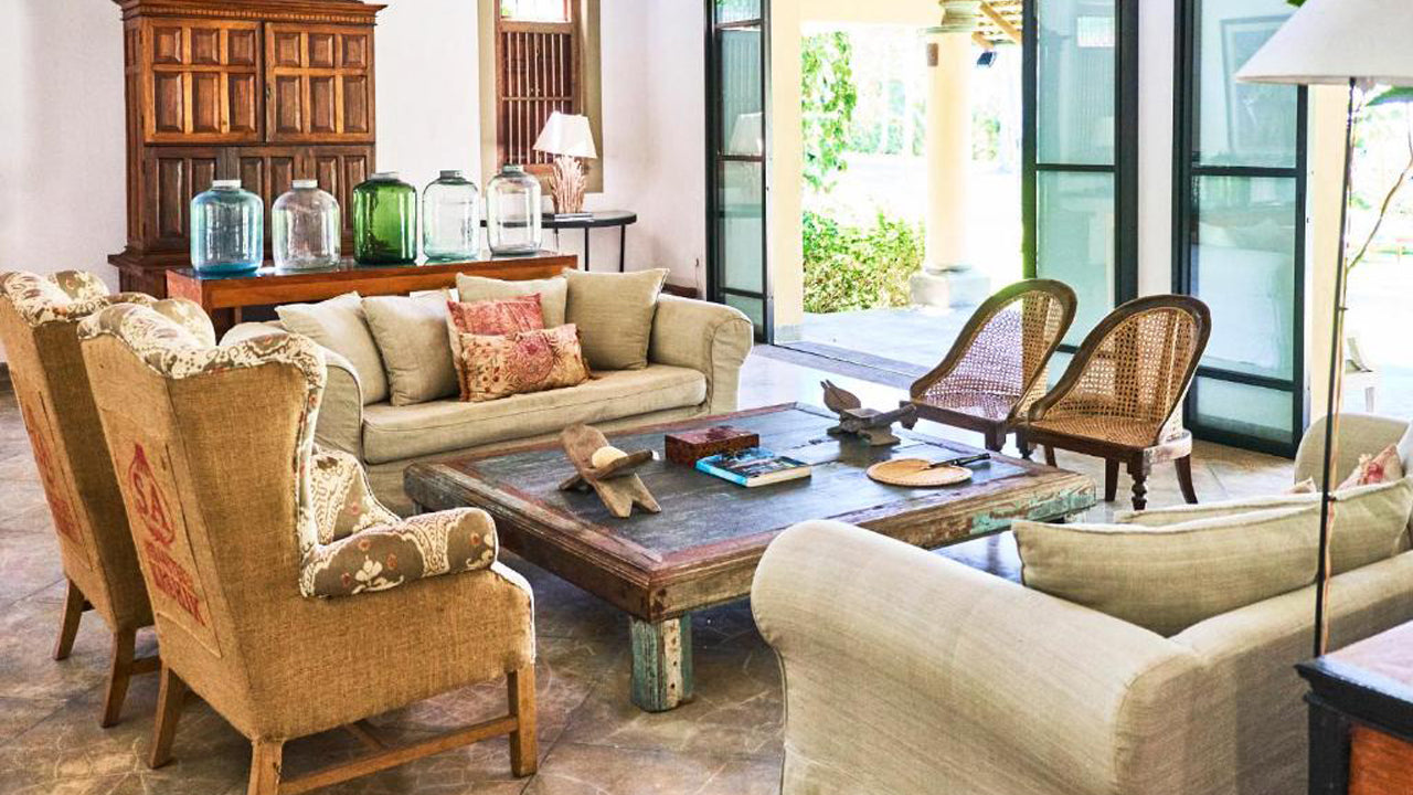 Unterkunft:Das Anwesen wurde von Sri Lankas führendem Architekten entworfen und ist ein wahres Juwel. Die voll ausgestattete Villa bietet luxuriöse Unterkünfte mit drei Doppelzimmern, einem Schlafzimmer mit zwei Einzelbetten und einem flexiblen Schlafzimmer über dem Yogastudio für bis zu zehn Personen. Jedes Schlafzimmer verfügt über private Terrassen, Open-Air-Badezimmer, WLAN und Klimaanlage. Die Inneneinrichtung besticht durch lokale Kunst und Antiquitäten und schafft eine Mischung aus Luxus und Authentizität.