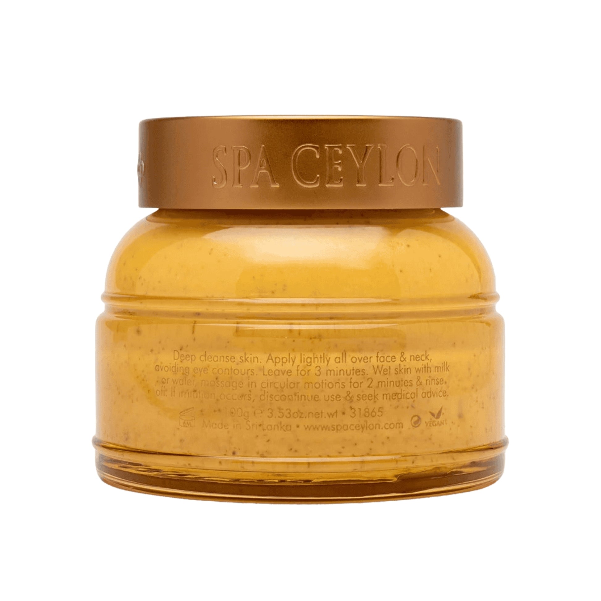 Spa Ceylon's kraftvolle Hauterneuerungsformel kombiniert die Vorteile von reinem Reisbranöl, das reich an Antioxidantien und Gamma Oryzanol ist, mit tiefwirkendem indischen Ginseng, Mais und Walnüssen. Diese Inhaltsstoffe wirken zusammen, um die Haut sanft zu peelen und zu reinigen, verstopfte Poren zu befreien, abgestorbene Zellen zu entfernen und Unvollkommenheiten zu minimieren. Organisches Aloe Vera und natürliche Vitamine verbessern den Hautton, während Ceylon grüner Tee und Brunnenkresse die Erneuerung der Hautzellen beschleunigen. Virgin Coconut und Olivenöle spenden Feuchtigkeit, machen die Haut weich und glatt, während Ceylon Moringa und Witch Hazel helfen, die Haut zu klären und einen helleren, jugendlicheren Glanz zu fördern. Perfekt für diejenigen, die einen erfrischten, strahlenden Teint suchen.