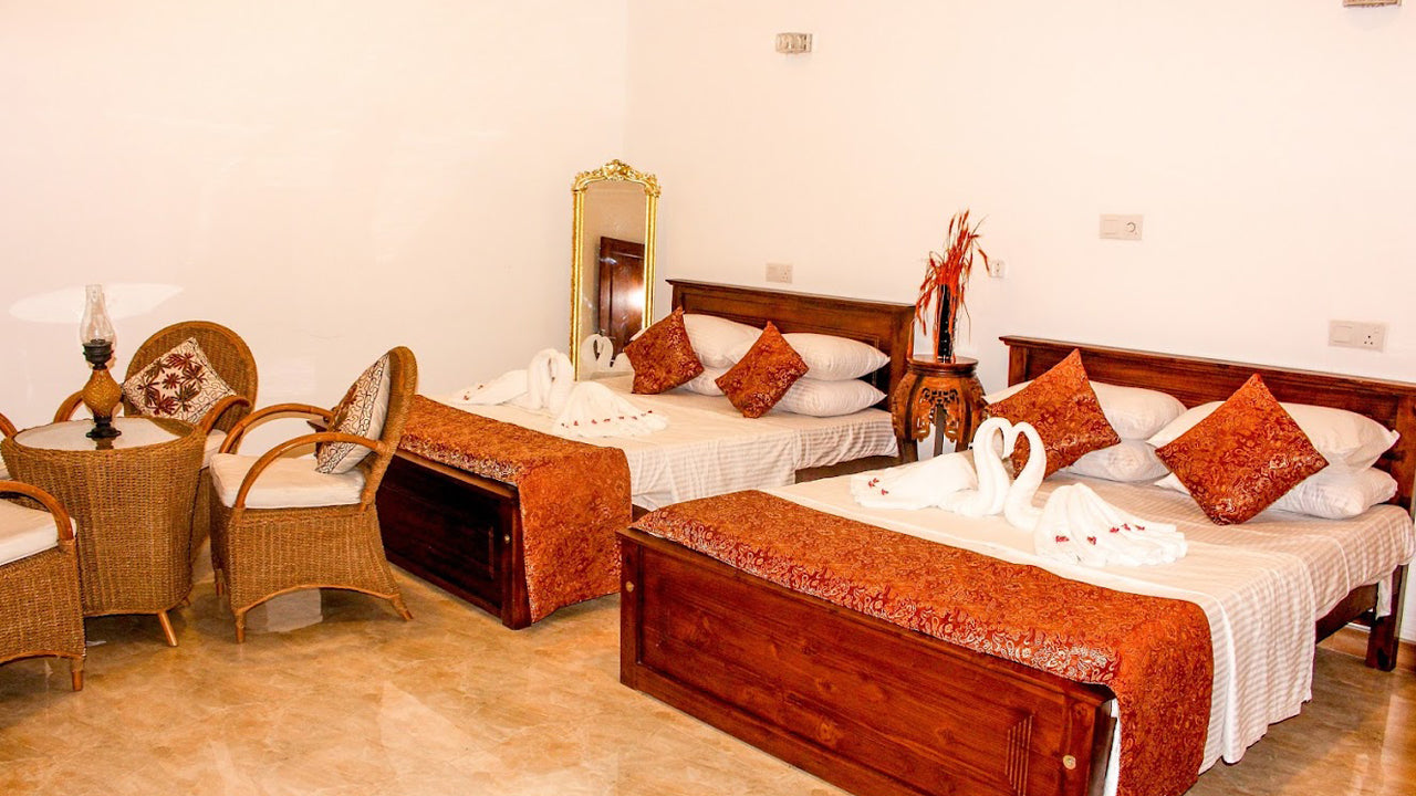Unterkunft:Das Galle House bietet geräumige und komfortable Unterkünfte mit vier gemütlichen Schlafzimmern, jedes mit einem Doppelbett. Die Villa verfügt außerdem über ein Wohnzimmer mit Schlafsofas, ideal zum Entspannen. Jedes Zimmer ist mit modernen Annehmlichkeiten wie Klimaanlage, WLAN und einem LCD-Fernseher ausgestattet. Für zusätzlichen Komfort steht den Gästen ein privater Balkon oder eine Terrasse mit herrlichem Gartenblick zur Verfügung.