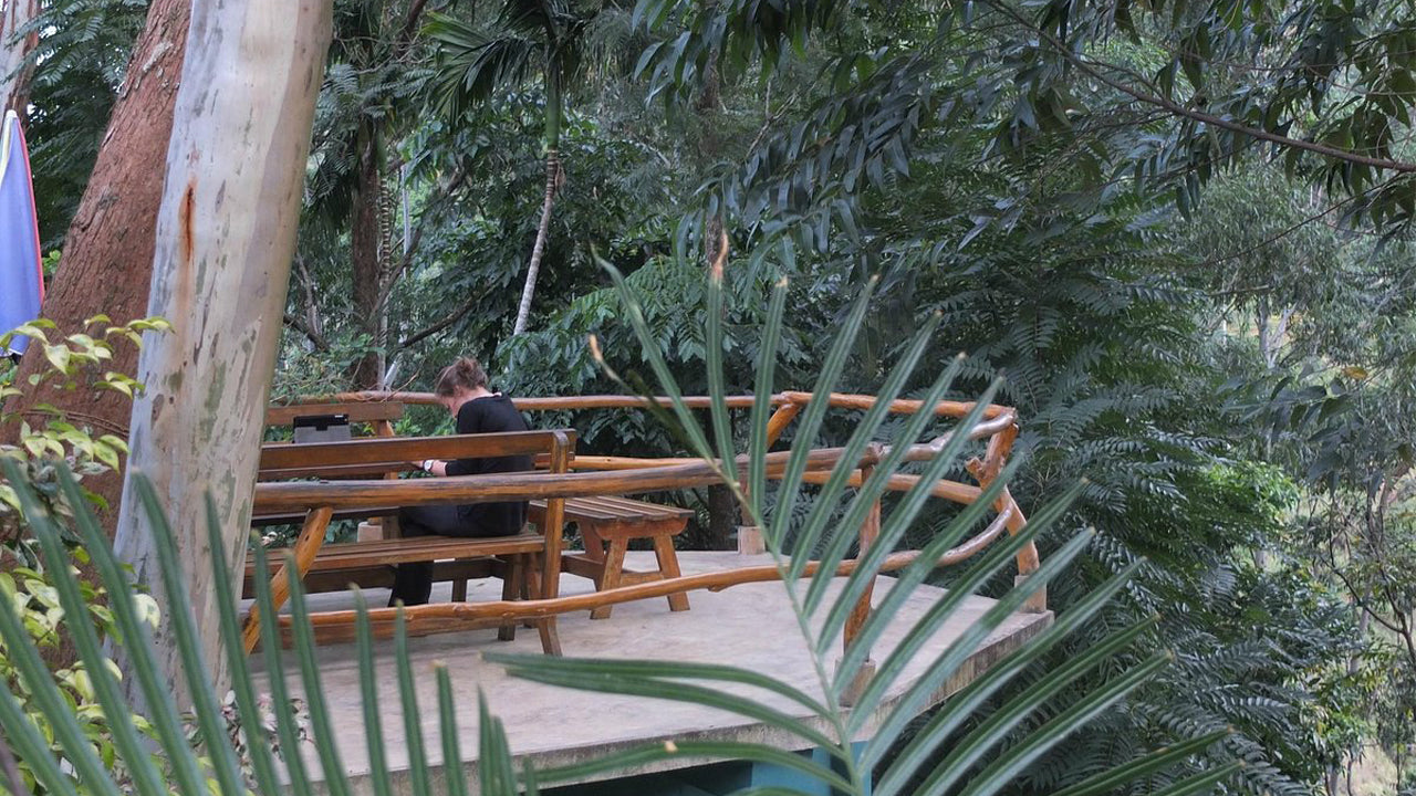 Unterkunft:Das Gästehaus verfügt über drei wunderschön gestaltete Zimmer, von denen zwei einen 180-Grad-Panoramablick auf den Dschungel und den Wasserfall bieten. Das dritte Zimmer verfügt über Glastüren, die auf eine geräumige Veranda führen, sodass die Gäste in die Natur eintauchen können. Jedes Zimmer bietet eine heimelige, gemütliche Atmosphäre und sorgt für einen erholsamen und komfortablen Aufenthalt.